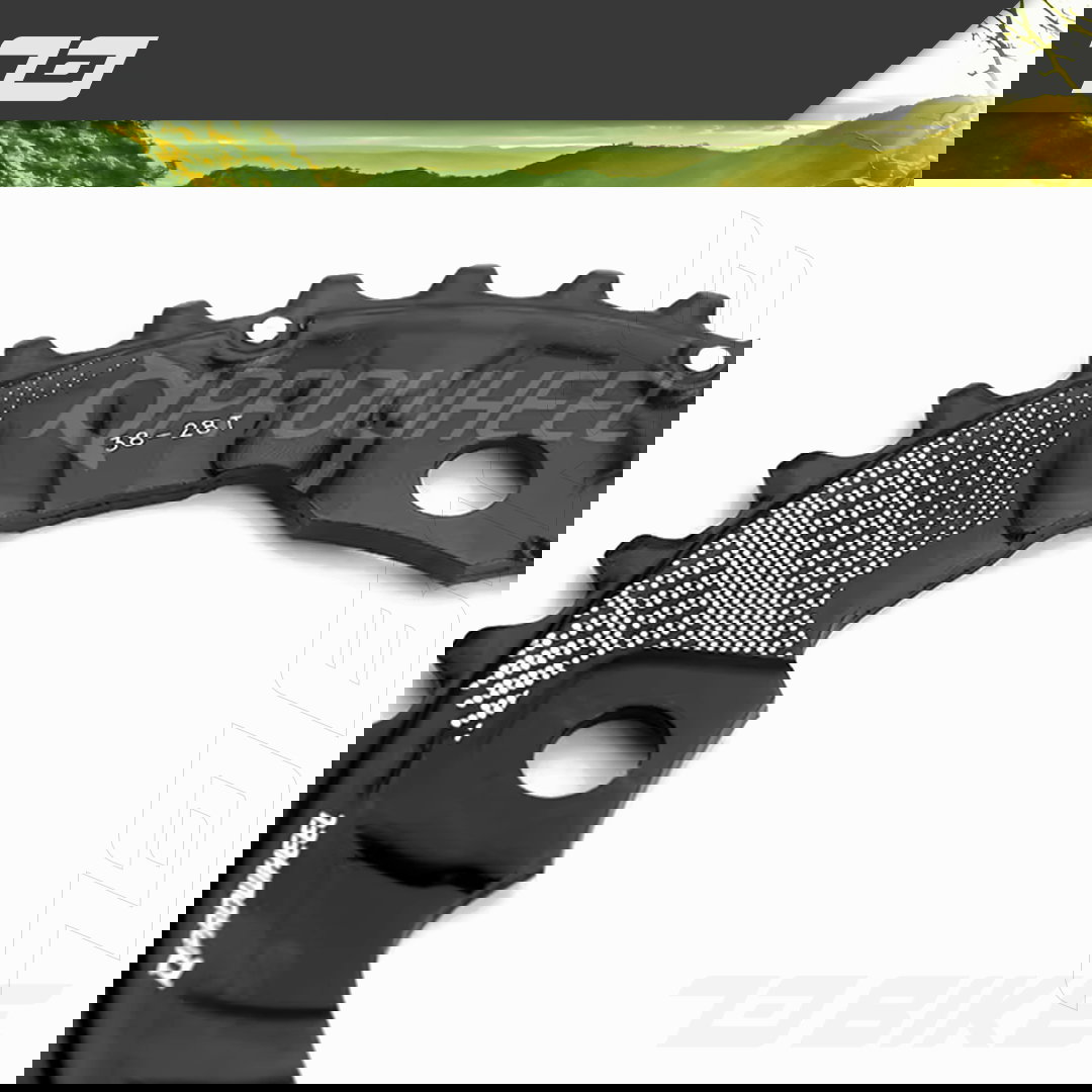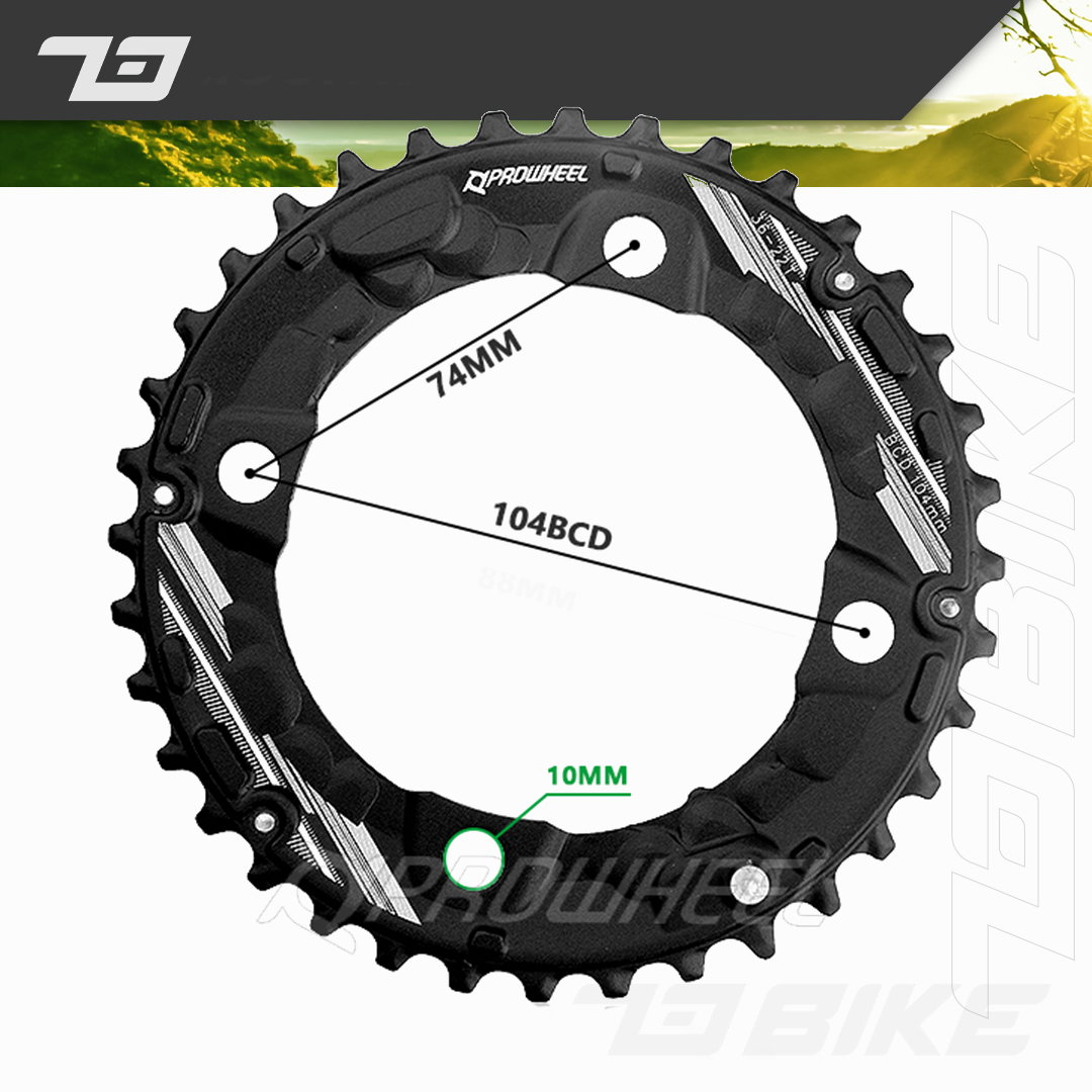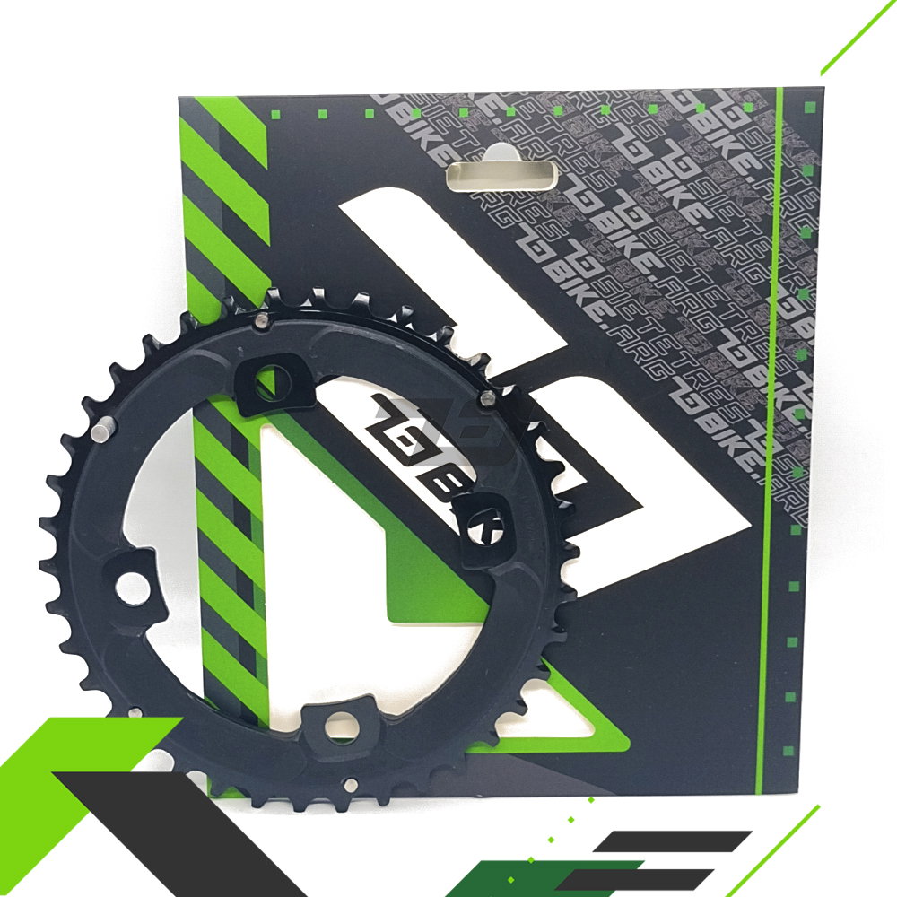 Plato para BIPLATO para palancas de 104 BCD. - 38 dientes. - 36 dientes. (Ver disponibilidad) De Aluminio. Peso: 137 Grs aprox. Disponibles 96 asimetrico de 36-26. Estamos a disposicion de cualquier duda, asesoramiento o consulta con respecto a la medida correcta de tus palancas! 73BIKE