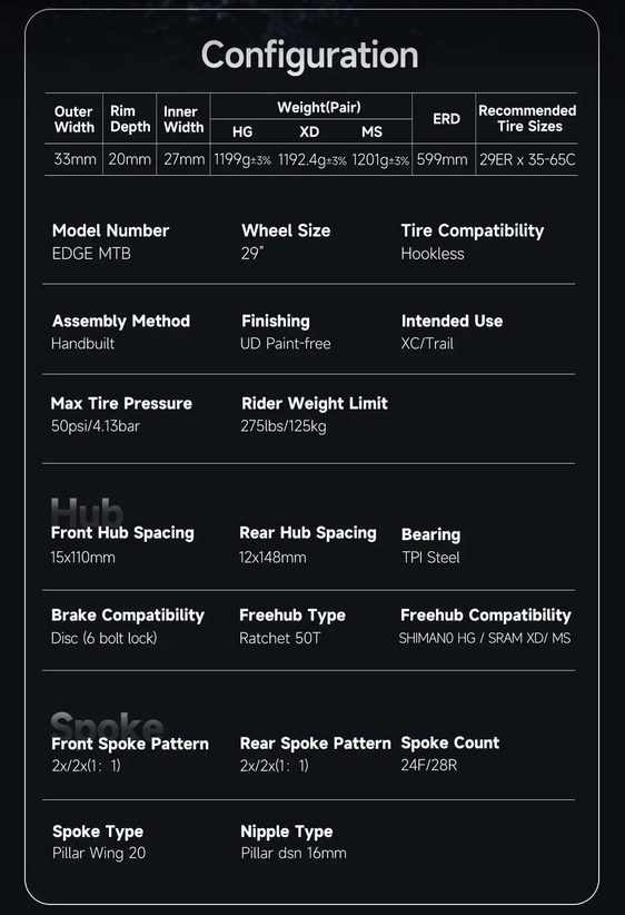 Par de ruedas ELITE WHELLS rodado 29 de fibra de carbono para MTB.