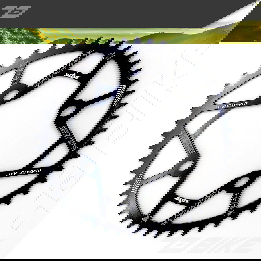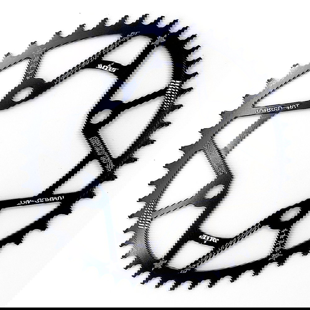 Plato Narrow Wide marca Wuzei para monoplato de aluminio mecanizado CNC de 48 dientes color negro de 104 BCD REDONDO.