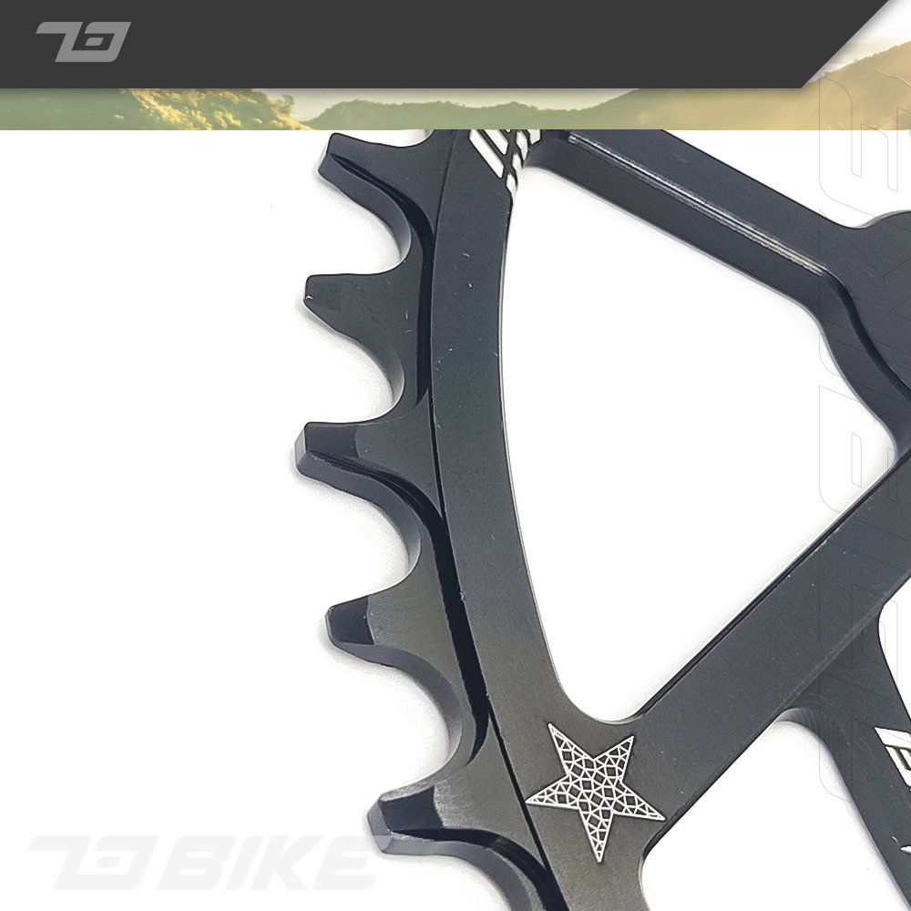 Plato Narrow Wide marca Wuzei para monoplato de aluminio mecanizado CNC de 50 dientes color negro de 104 BCD REDONDO.