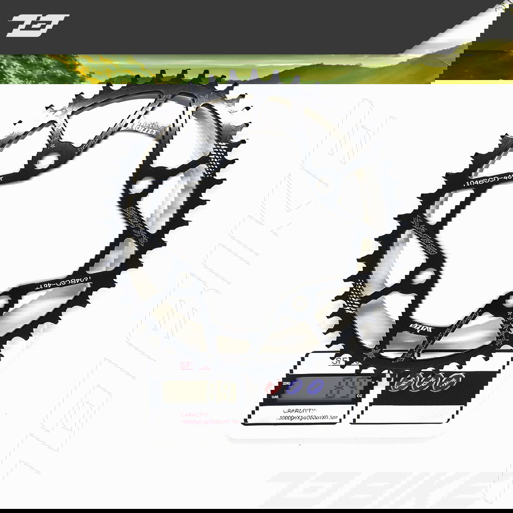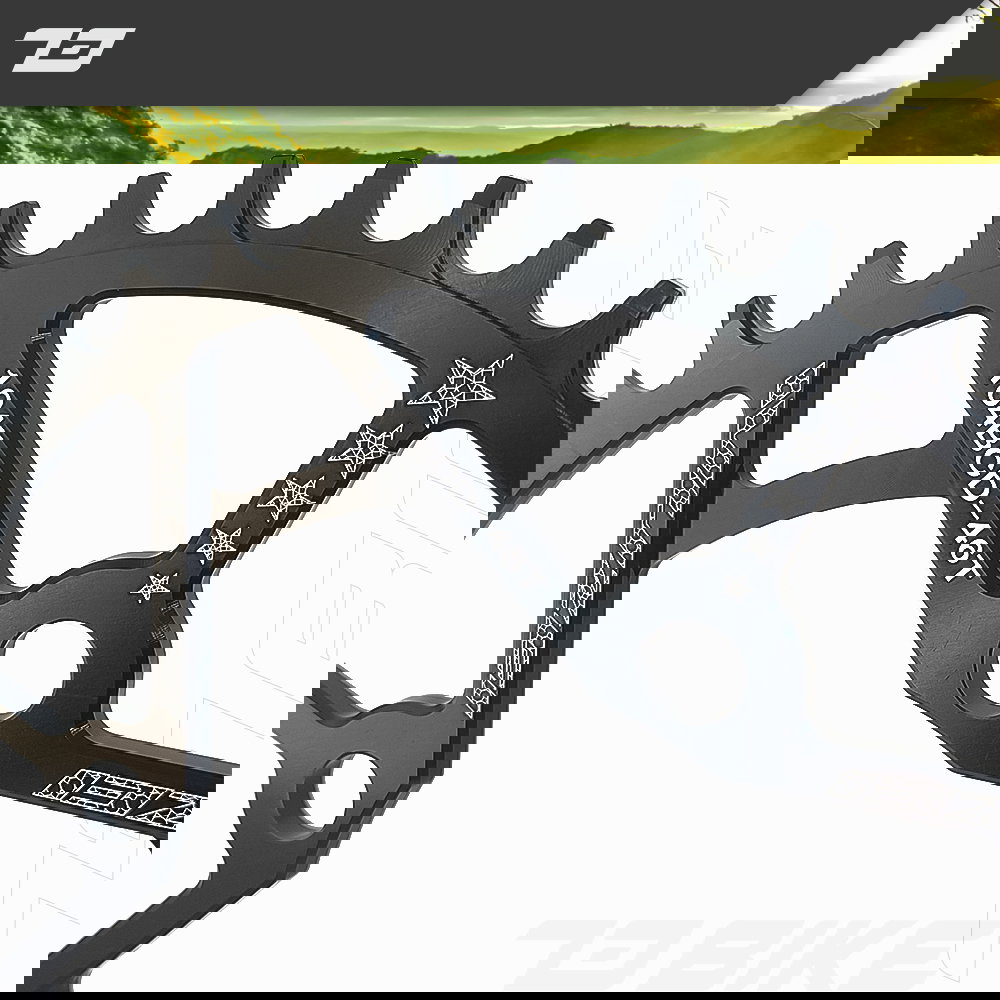 Plato Narrow Wide marca Wuzei para monoplato de aluminio mecanizado CNC de 46 dientes color negro de 104 BCD REDONDO.